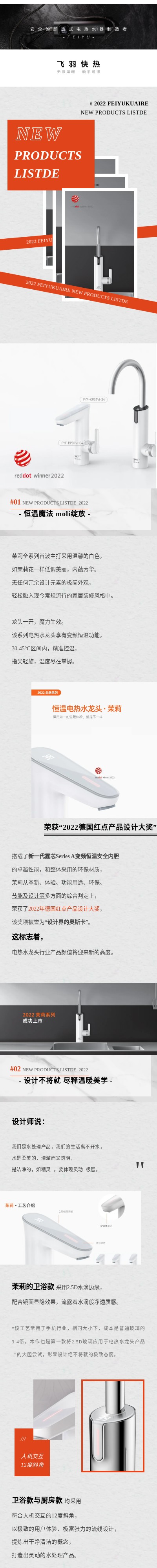 飛羽快熱本年度的新品茉莉系列重磅來襲!生活瞬息萬變,溫度恒定不變,相信在未來的發展中,飛羽快熱將持續研發出更多兼具時尚和實用性的即熱式產品,讓中國千萬家庭都能過上更加美好的溫暖生活。