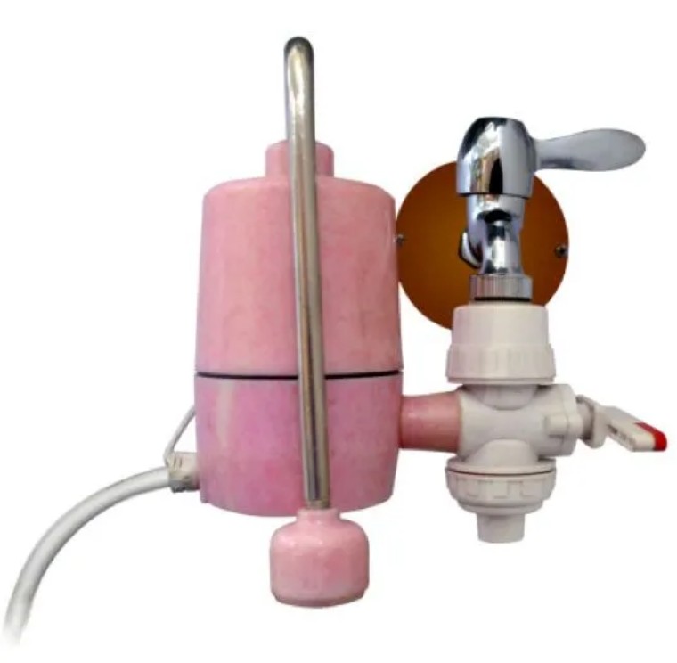 接上家里的水管,打開開關,十幾秒鐘之后,涼水就變熱了。