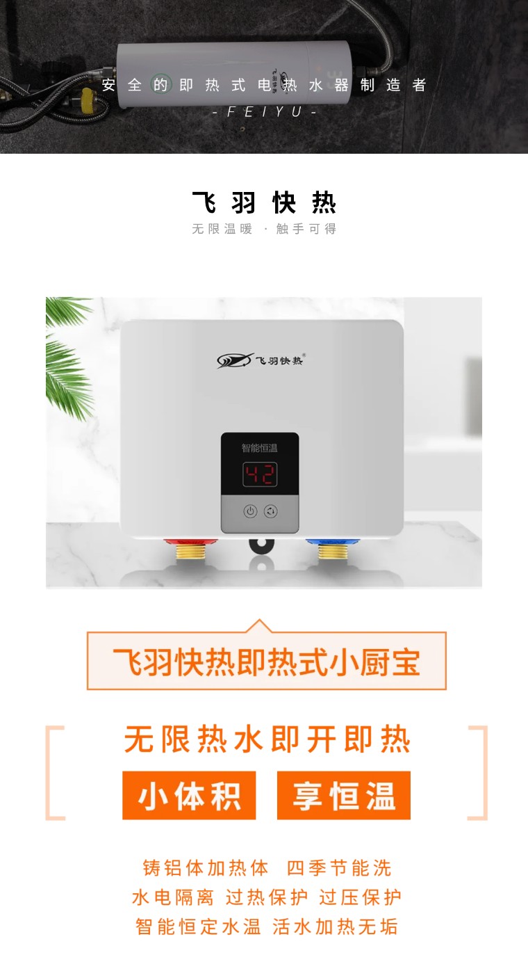 即熱式廚寶則沒有儲水箱的限制,熱水輸出率更高。使用時想用多少熱水就加熱多少水,通過超高的加熱效率,達到即開即熱的出水效果。無需長時間循環(huán)加熱保溫耗電,開即用,關(guān)即停;待機狀態(tài)下,50天不到1度電,比儲水式廚寶更節(jié)能環(huán)保。