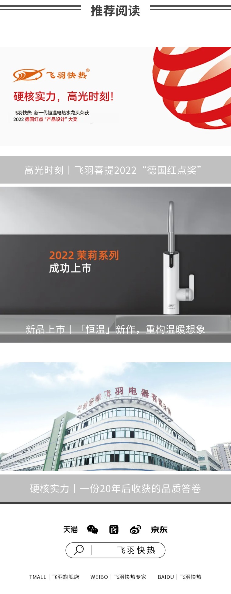 時代在進步,科技在更迭。太陽能熱水器的“網紅”已成過去,智能沐浴新時代,從使用飛羽快熱即熱式電熱水器開始吧~