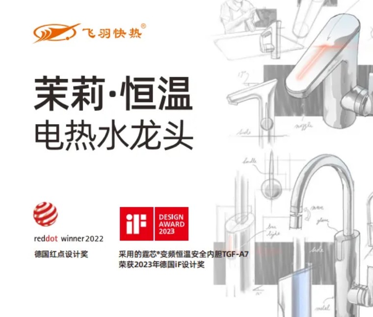 本次重磅推出的明星產品,正是榮獲了2022年度德國紅點獎和所用內膽獲得2023年度德國iF獎的恒溫式電熱水龍頭·茉莉。