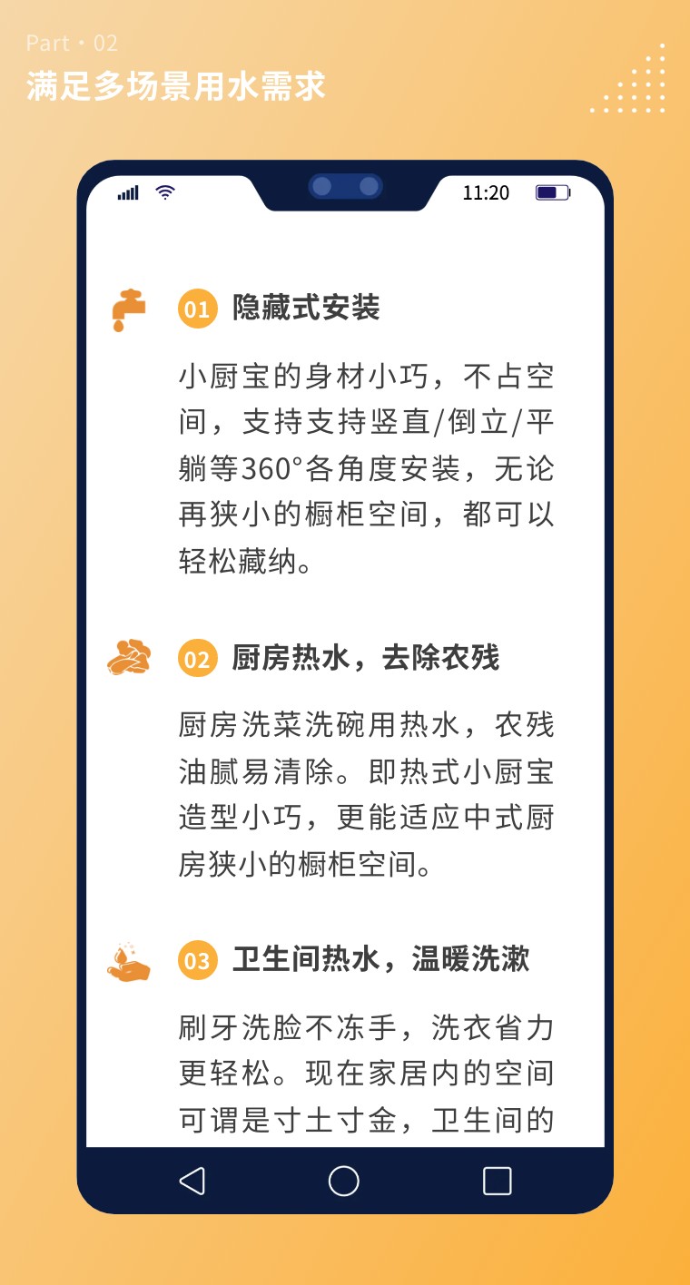即熱式小廚寶既可以用于洗手、刷牙這種多頻次、用水少的短時(shí)熱水,也可以滿足洗碗洗衣服這類長(zhǎng)時(shí)間、大水量用水需求。靈活適用多種場(chǎng)合,沒(méi)有熱水用量限制。搭載的變頻恒溫系統(tǒng),不僅可以恒定水溫,也可以用作熱水器補(bǔ)熱,省電省水,提升體驗(yàn)。